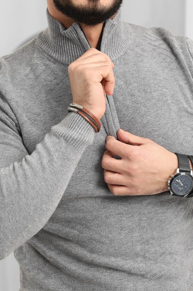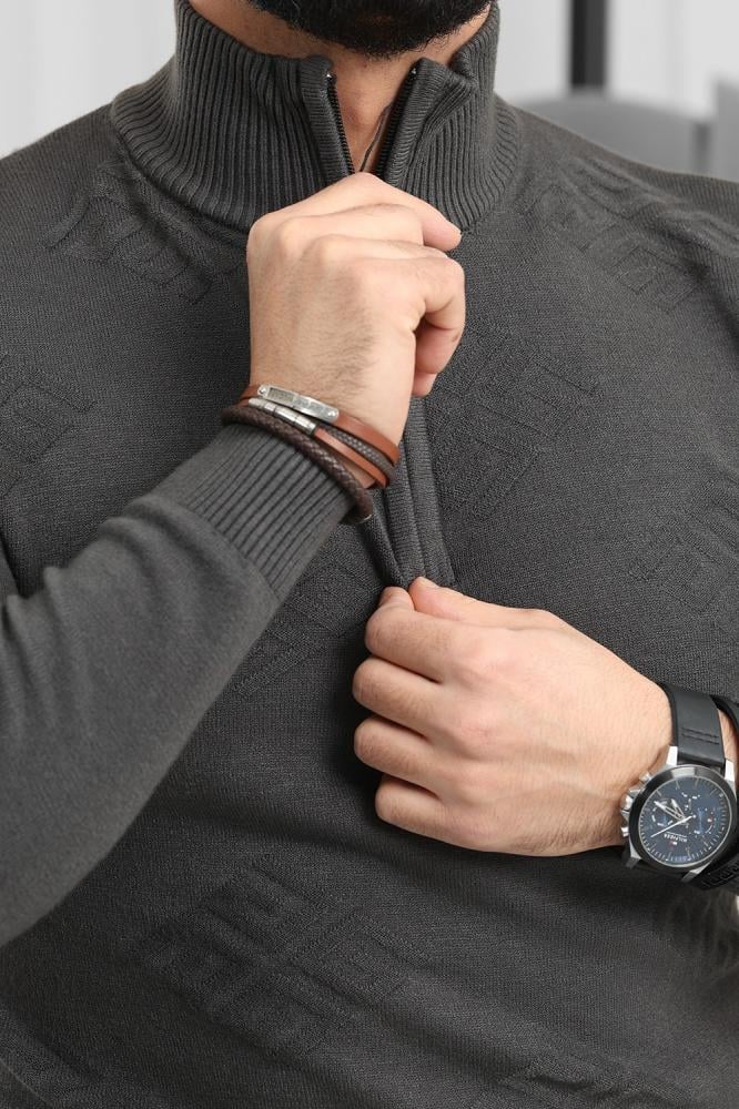 يساعدك بلوفر رجالي بسحاب رقبة عالية في الشعور بالراحة طوال اليوم، بفضل خامته الممتازة التي تمنع الشعور بالضيق. كما أن تصميمه العصري يجعله مناسبًا لمختلف المناسبات، سواء كانت رسمية أو غير رسمية.