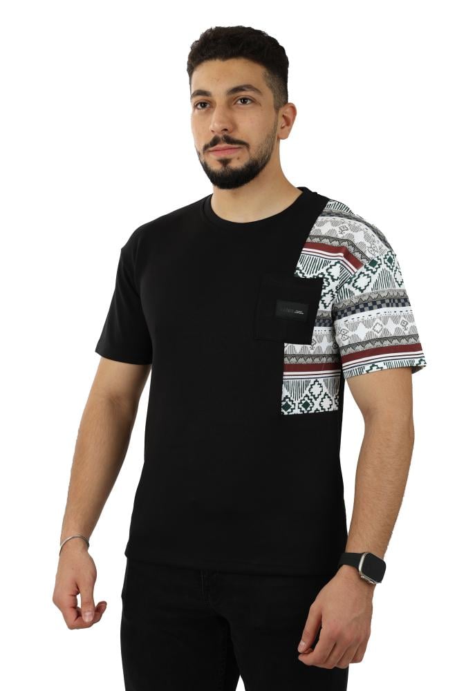 هذا التيشرت مصنوع من خامات عالية الجودة، مما يضمن لك متانة تدوم طويلاً. النقشة الفريدة التي تزين الكتف، مع الجيب الأمامي برسومات مميزة، تضيف لمسة من التميز إلى مظهرك.