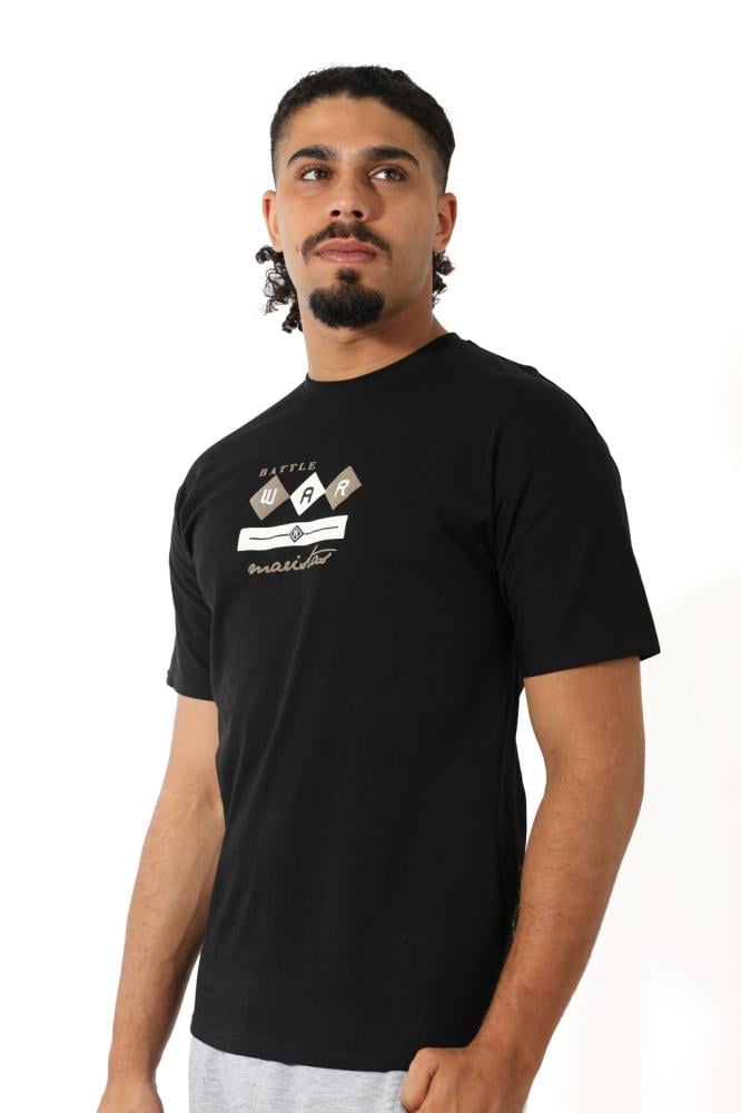 - تصميم عصري: يأتي بلون بني غامق جذاب مع طبعة جرافيك مميزة على منطقة الصدر، مما يضيف لمسة من الأناقة.