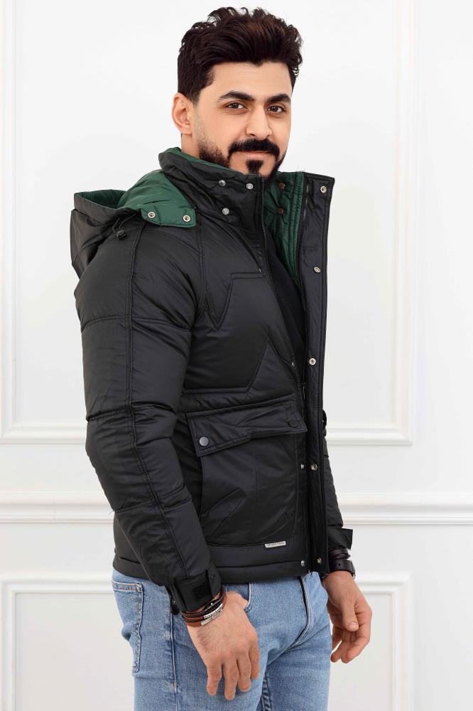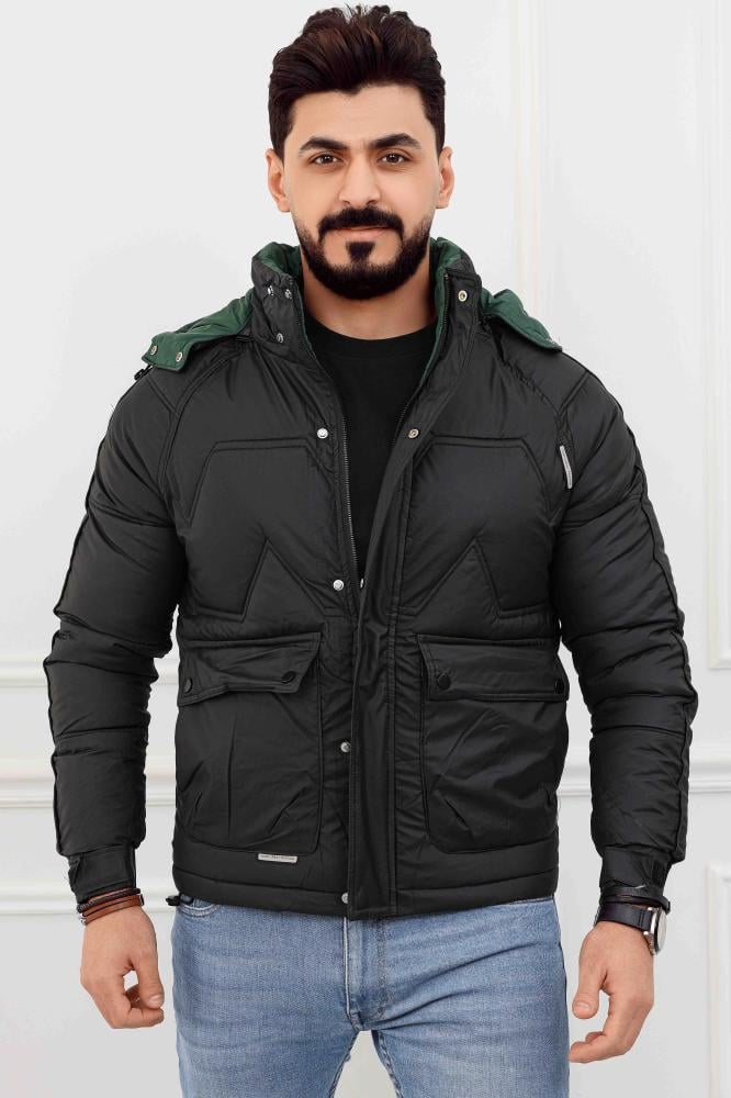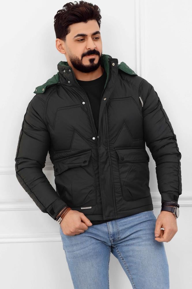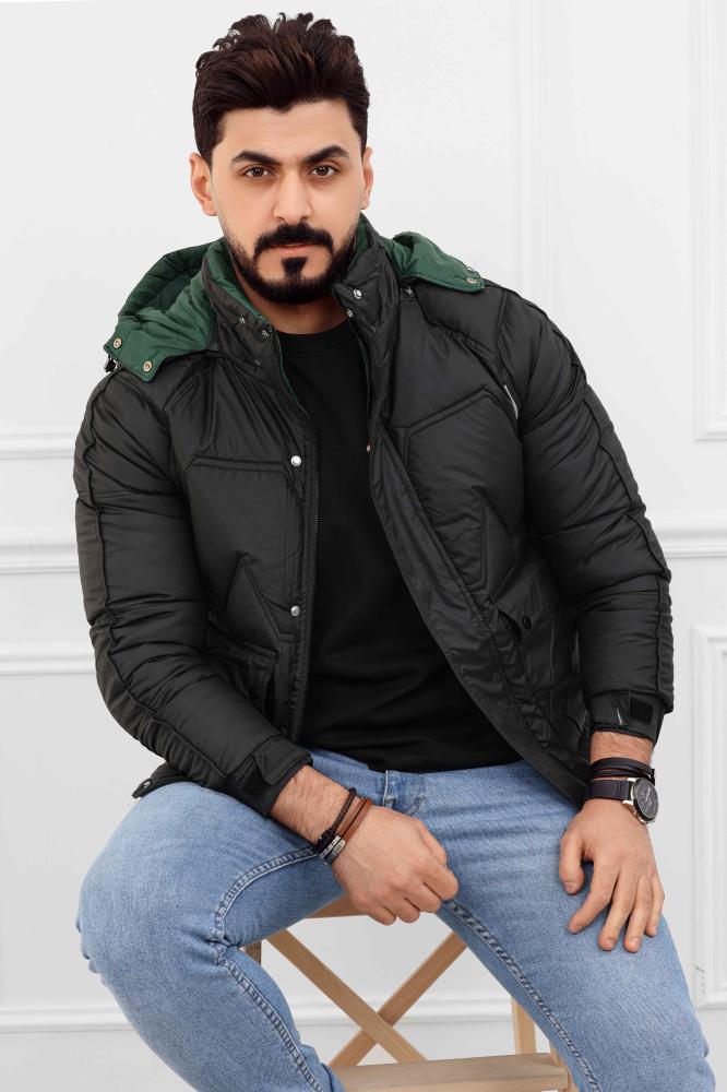 جاكت رجالي أسود مع غطاء رأس هو الخيار المثالي لمن يبحث عن الأناقة والراحة في آن واحد. يتميز هذا الجاكت بتصميم عصري يجمع بين الأناقة والوظائف العملية، مما يجعله مثاليًا لمختلف المناسبات.