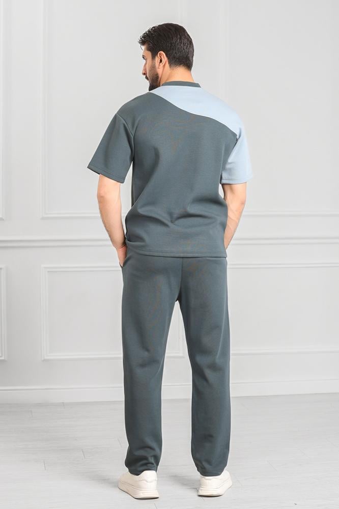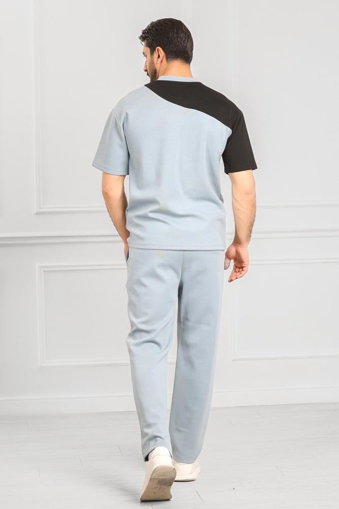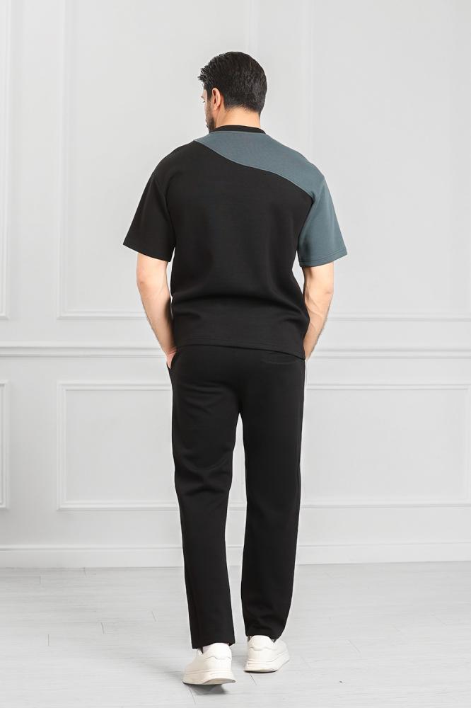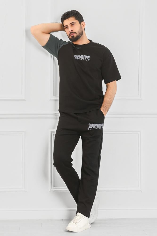 طقم ستريت وير موحد للرجال يتكون من تيشرت قصير الأكمام بلمسة تصميمية وبنطلون من قطعة واحدة