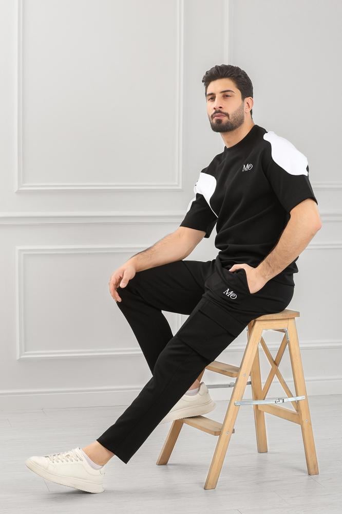 - زي موحد عصري : تيشرت قصير الأكمام + بنطلون كارجو من نفس اللون والمادة.