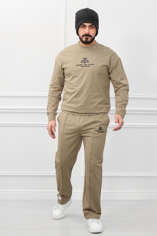 استمتع بإطلالة مريحة مع طقم سويتشيرت كاجوال رجالي بتصميم واسع وطباعة شعار مميزة. يتميز هذا الطقم بلون البيج الدافئ الذي يضفي لمسة من الأناقة على مظهرك، مما يجعله خيارًا مثاليًا للاستخدام اليومي.