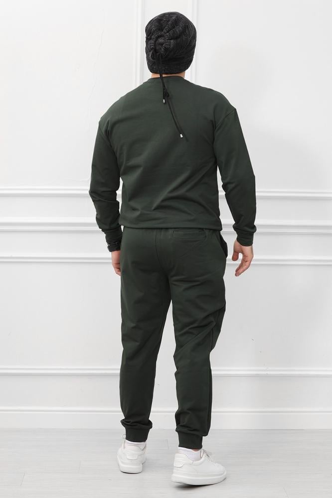 - ألوان عميقة: يأتي الطقم بلون أخضر داكن أنيق، مما يمنحك مظهرًا عصريًا وجذابًا.