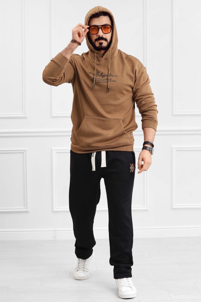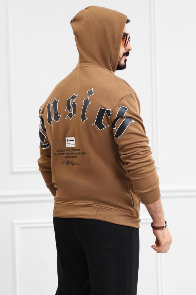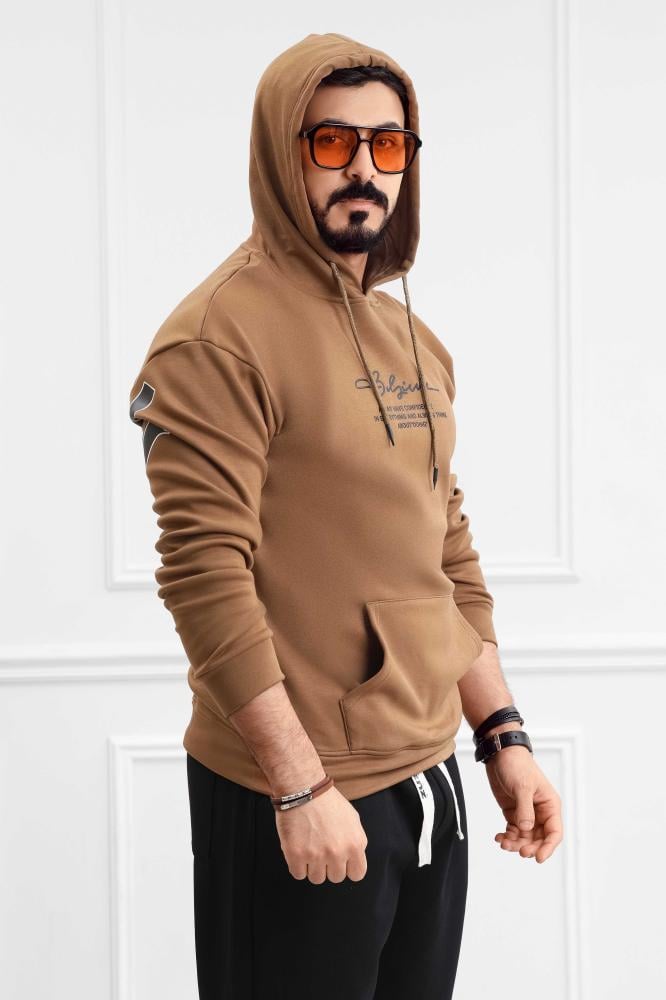 يأتي الهودي بلون بني جذاب، مما يجعله خياراً مثالياً لمختلف الإطلالات. كما يحتوي على قبعة قابلة للتعديل برباط، وجيوب أمامية عملية، مما يضيف لمسة من الوظائف العملية إلى التصميم العصري.