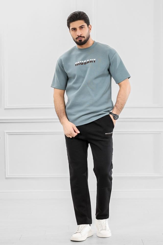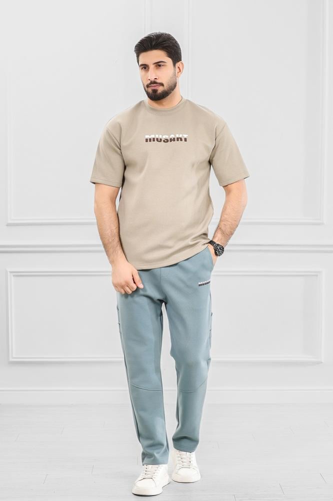 ملابس ستريت وير (Streetwear) / كاجوال عصرية. يتكون المنتج من قطعتين منفصلتين: تيشرت قصير الأكمام وبنطلون.